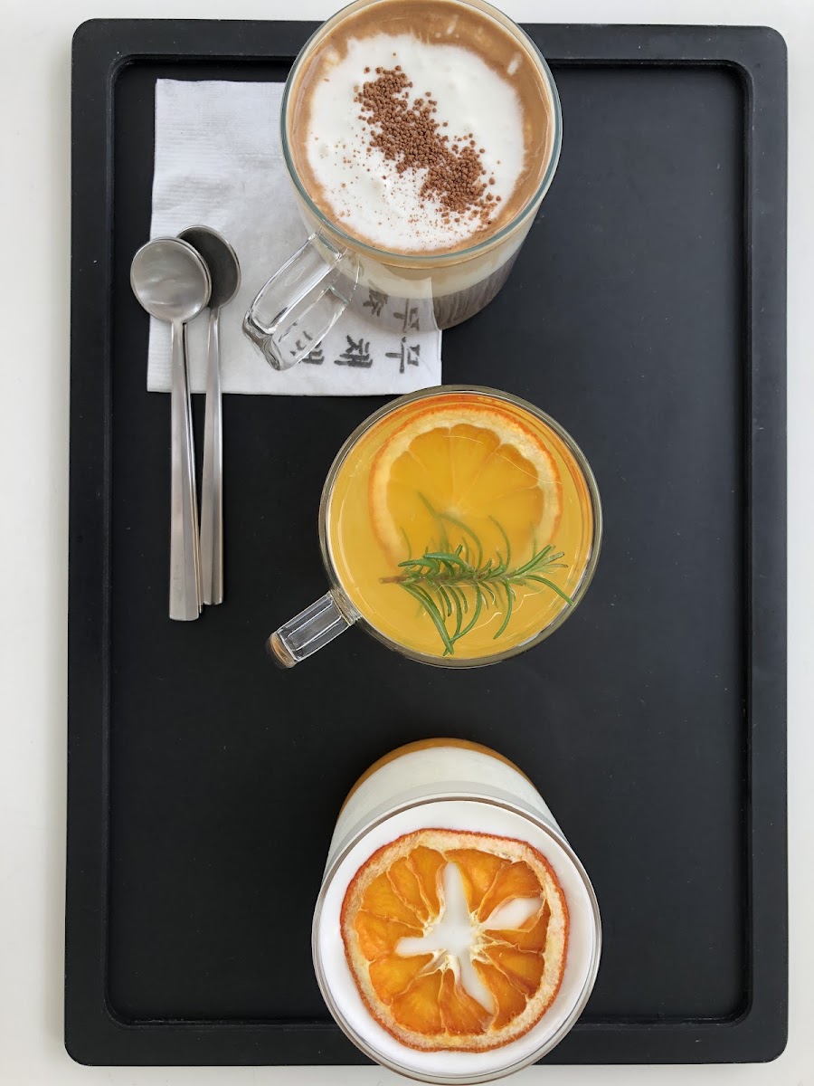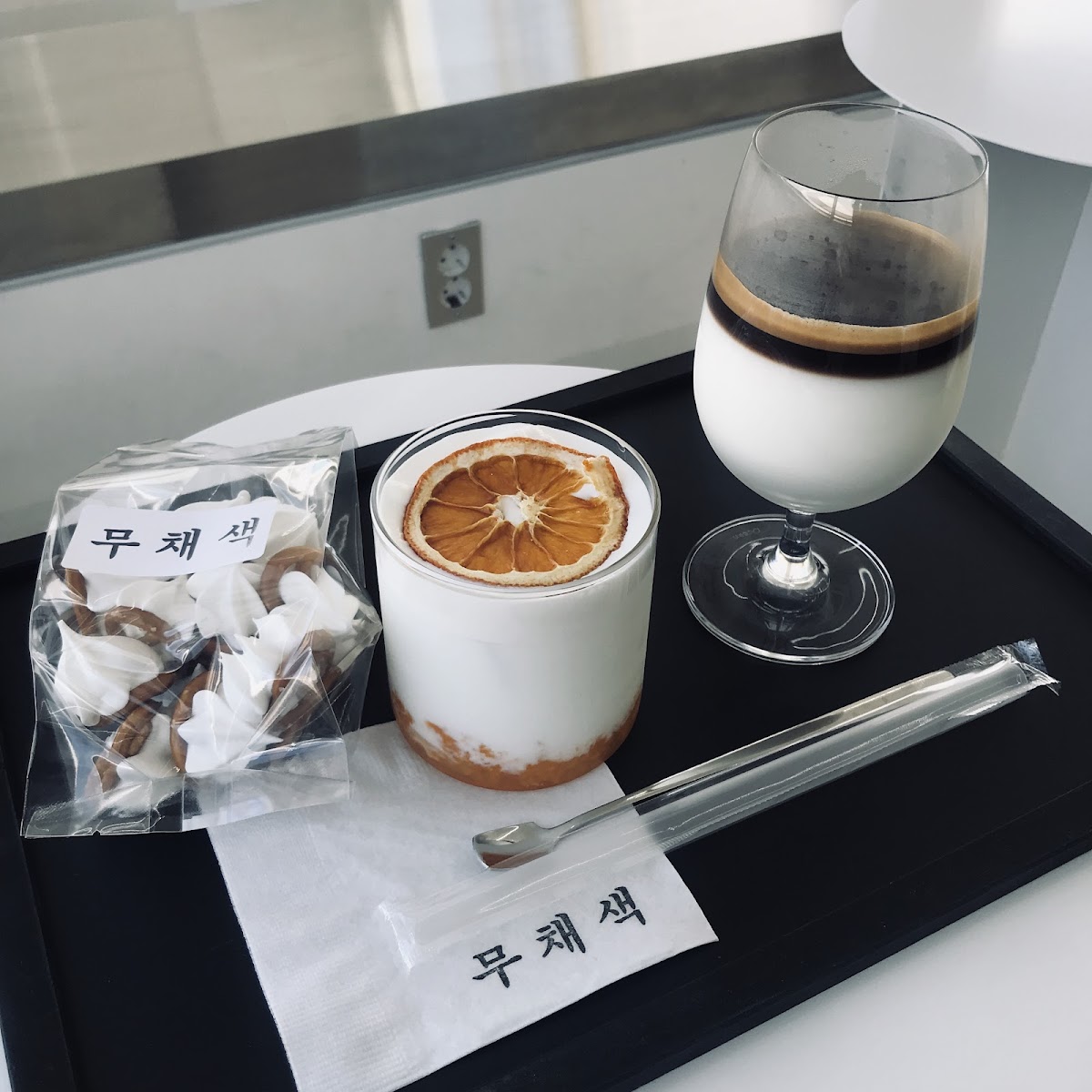 Upon entering, you are greeted by a chic, clean interior with elements of minimalism that create a cozy atmosphere. Each corner of MuChaeSaek Cafe radiates a sense of calm, making it an ideal spot to unwind after a long day of exploring the island. Whether you're looking to enjoy a moment of solitude or catch up with a friend, this cafe invites you to relax and rejuvenate.